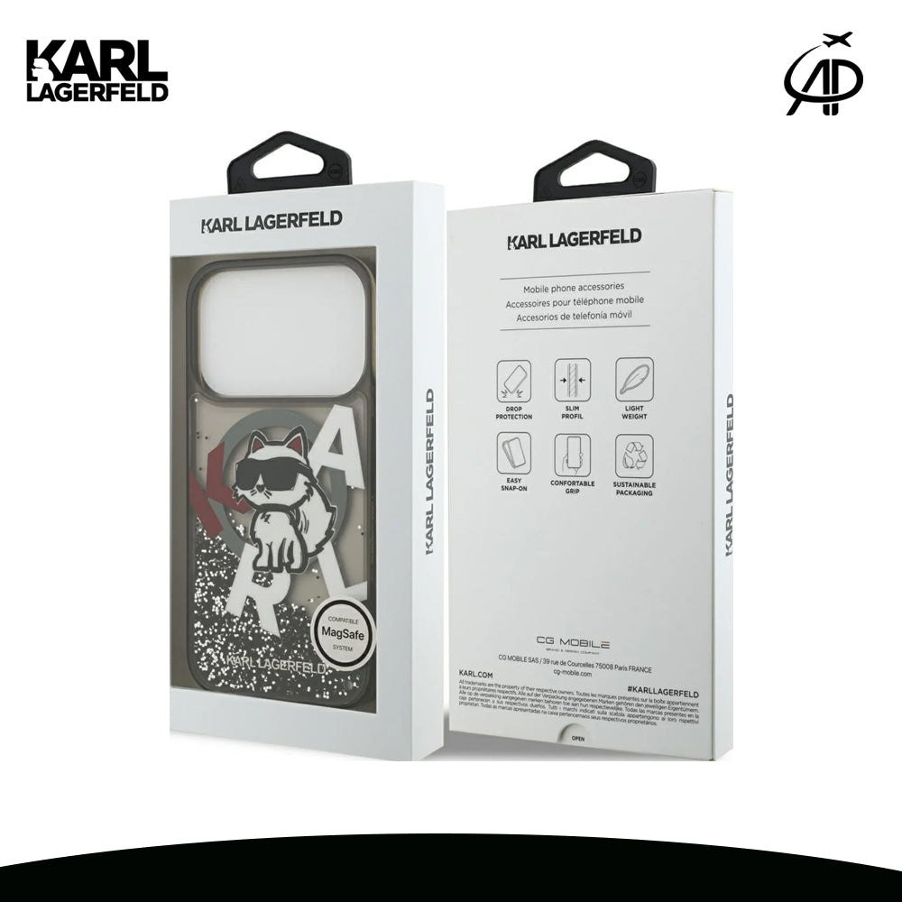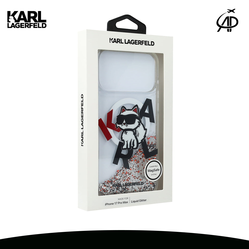 Sparkle & Style. ✨ This captivating phone case features the famous Choupette icon overlaid on a mesmerizing color, flowing glitter effect. It offers a truly dynamic, eye-catching look and essential protection. Fashion fun that moves with you.