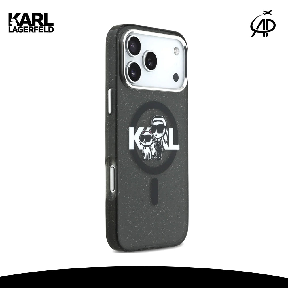 Glamorous Protection! 🌟 This unique phone case features the iconic Karl and Choupette graphic set against a striking shimmering, glitter-infused texture. It offers a fabulous blend of eye-catching sparkle and dependable daily defense. Shine bright with designer style.